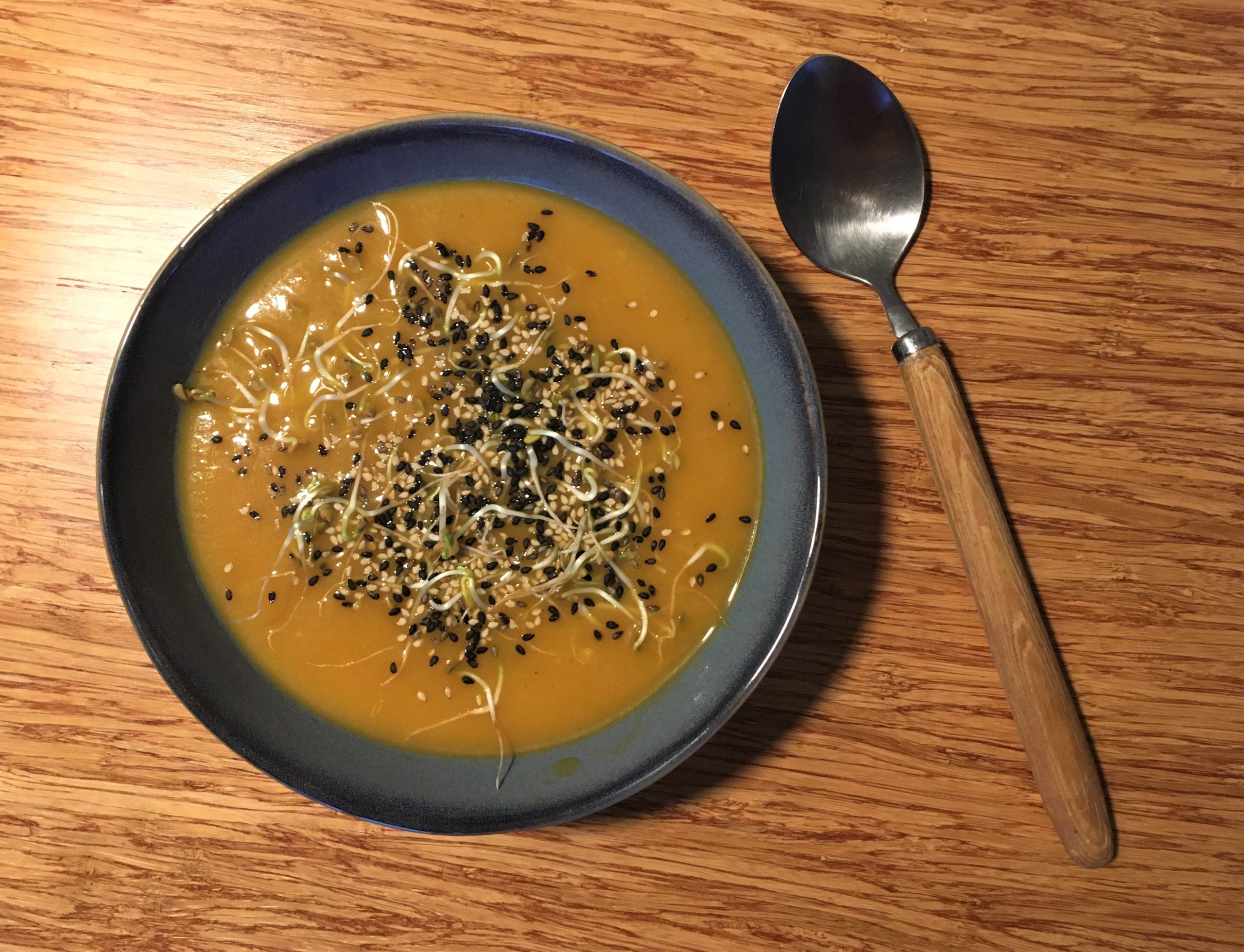 Moi j’ai associé la soupe avec des graines de sésame et des graines germées de fenugrec.